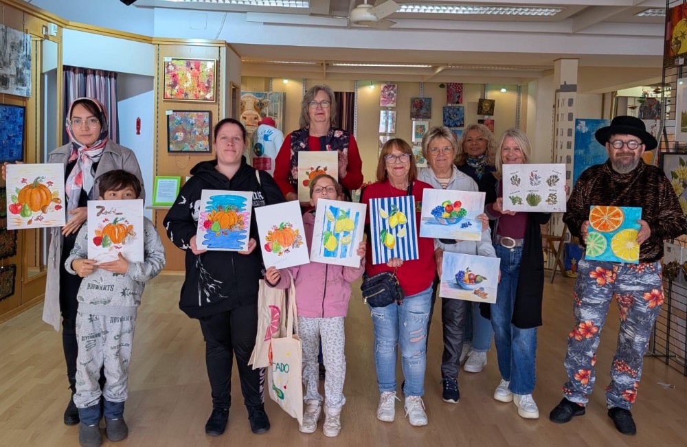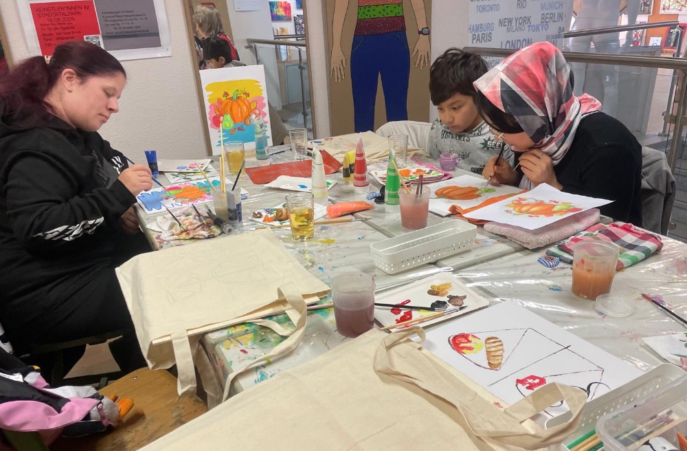 Kreativ und gesund: Der 9. WS war ein voller Erfolg! Der Workshop vom 11. Oktober 2025 stand ganz im Zeichen des Rechts auf gesunde Ernährung. In toller Atmosphäre und unter fachkundiger Anleitung entstanden beeindruckende Herbst-Stillleben auf Leinwänden sowie einzigartige, bemalte Stofftaschen. Wir freuen uns über die vielen strahlenden Gesichter und die tollen, kreativen Werke!